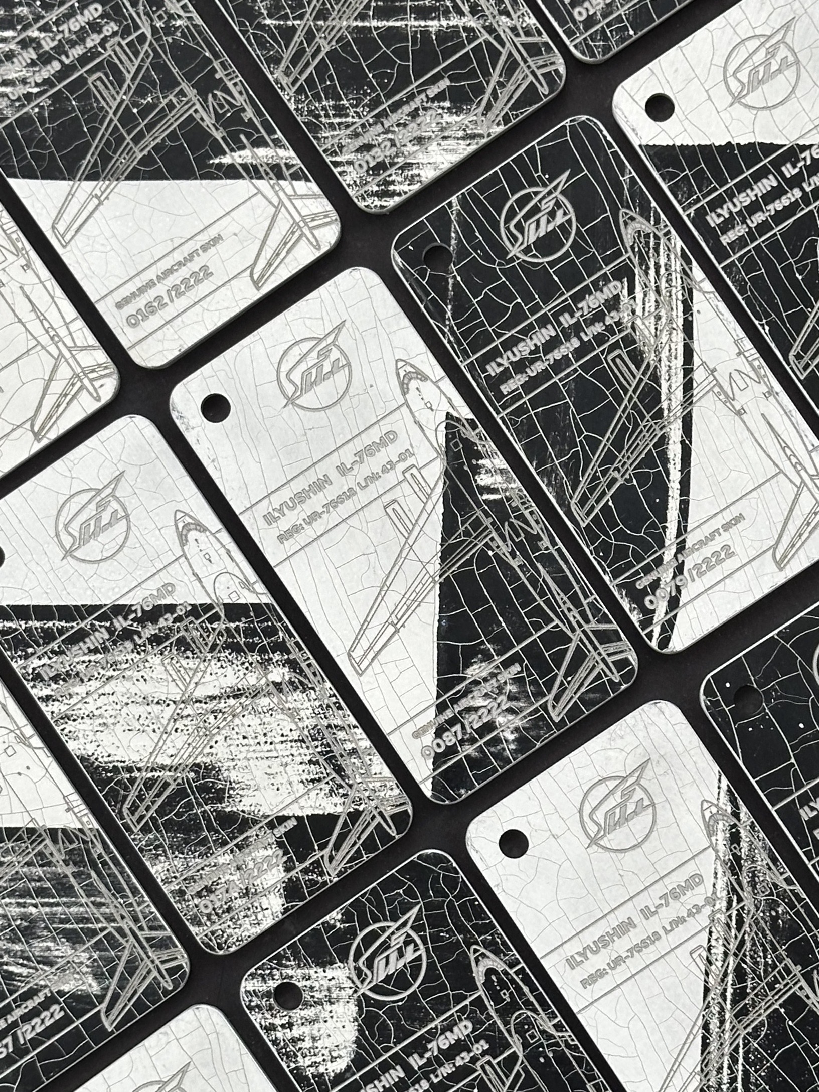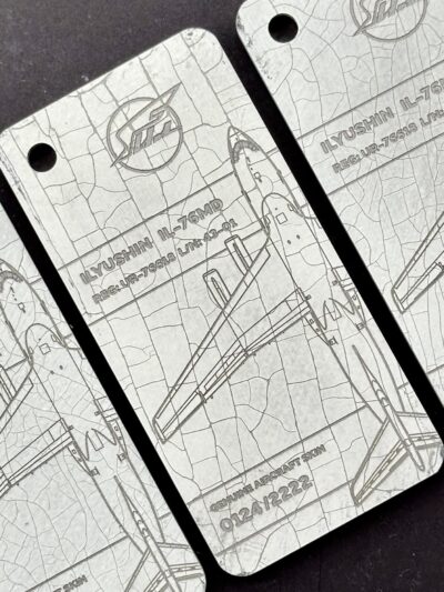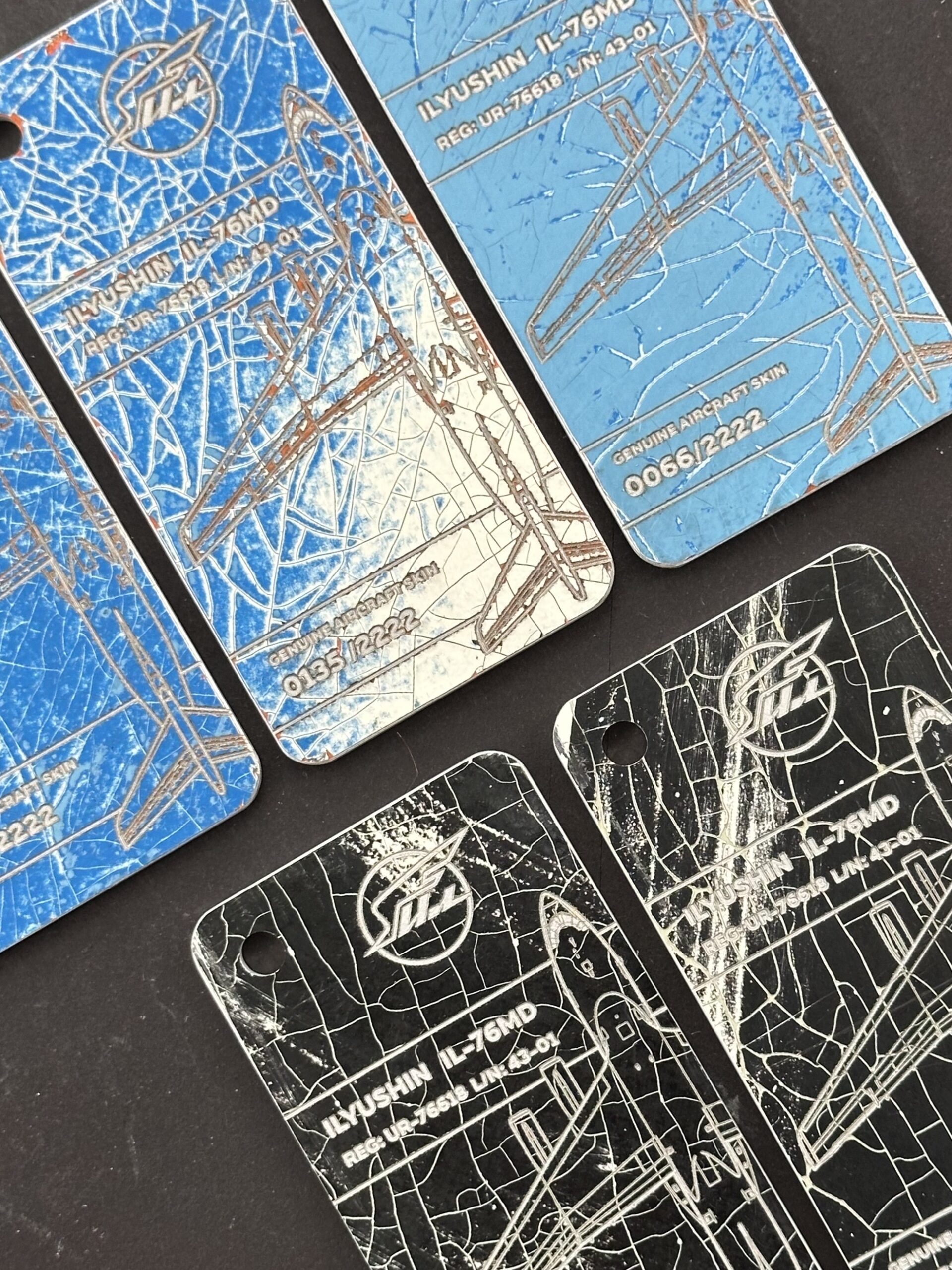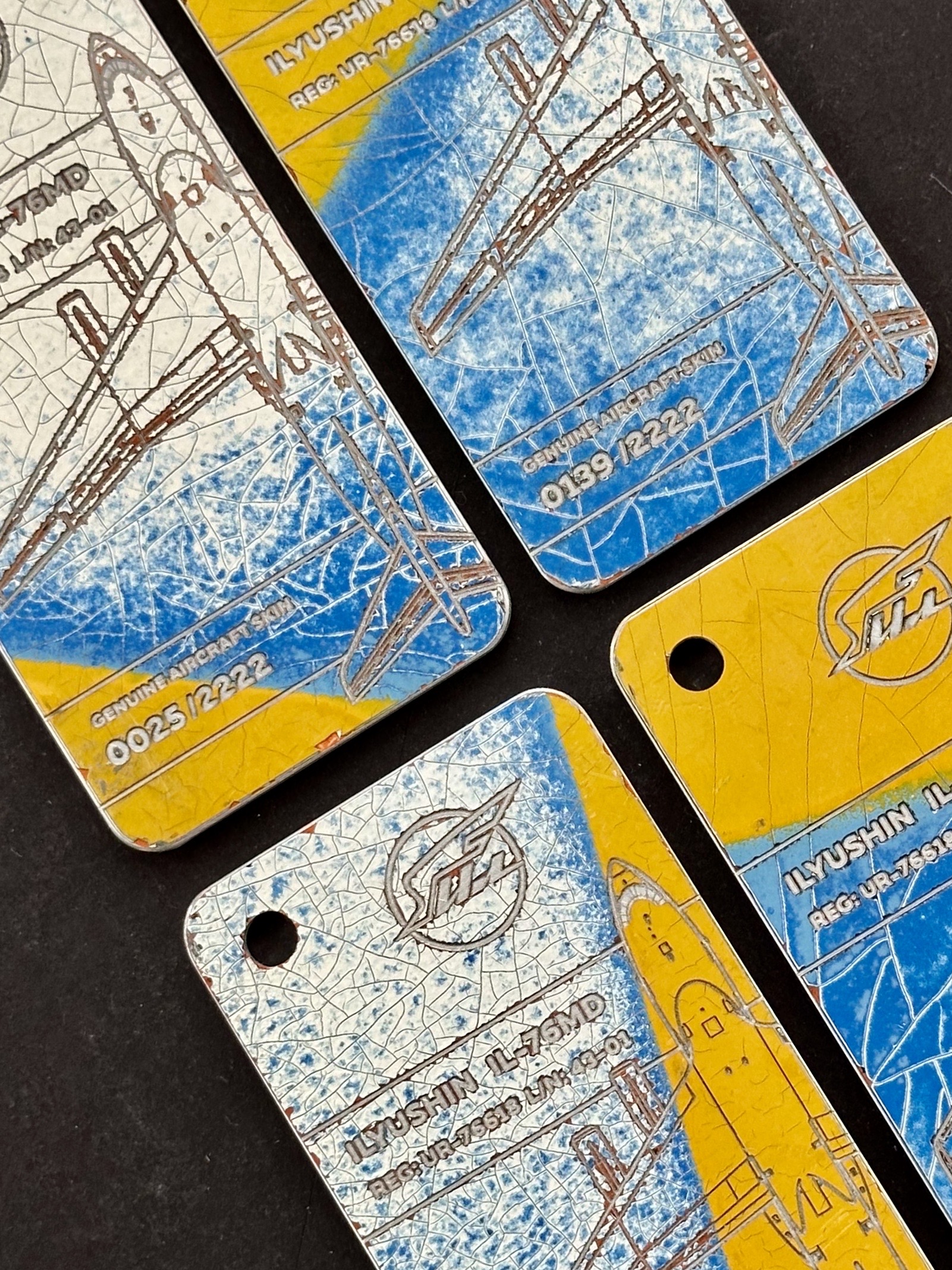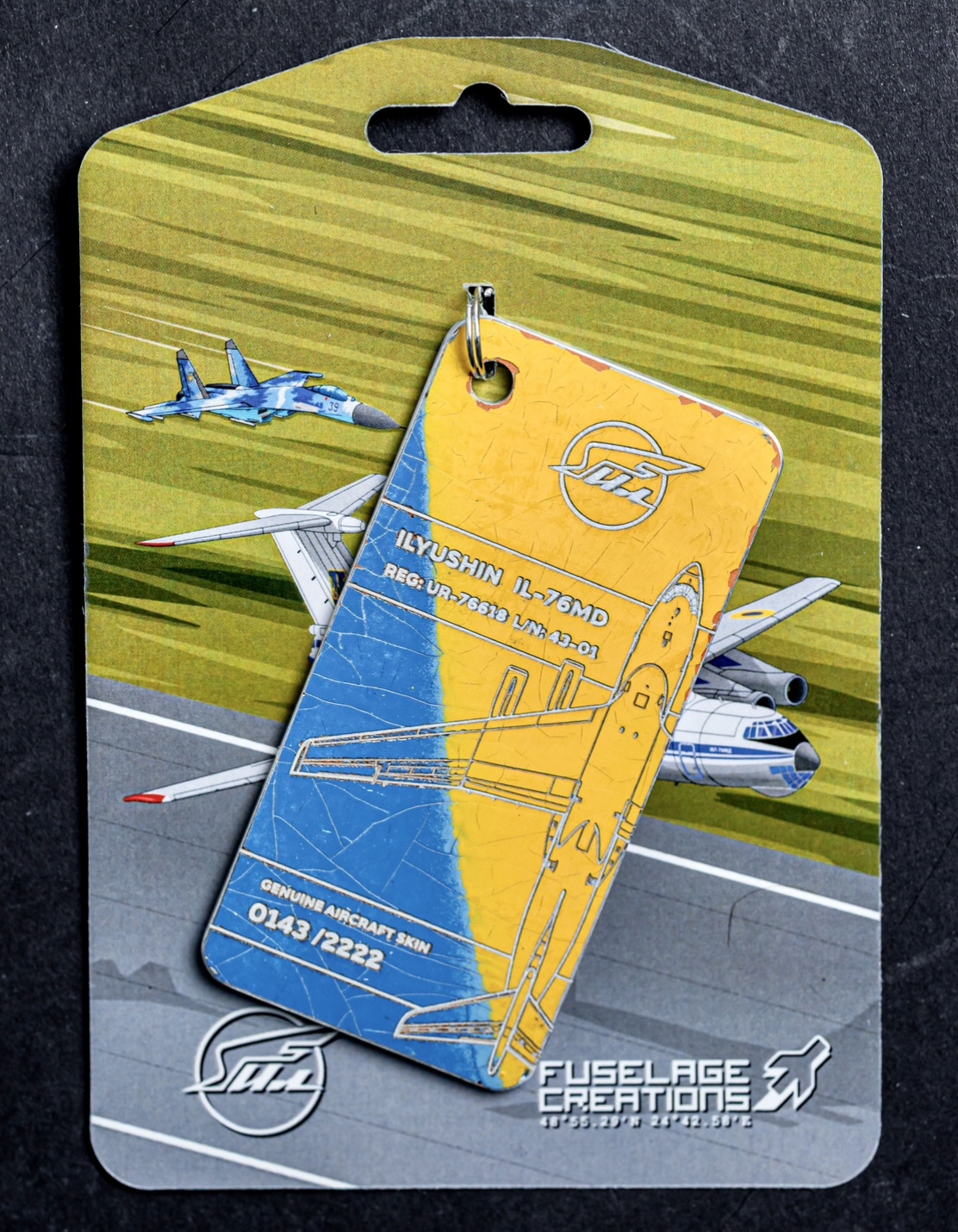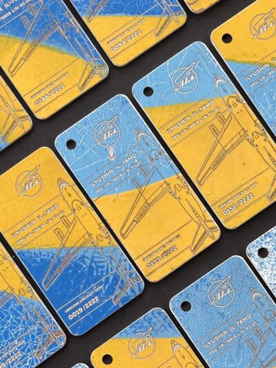 Fuselage Creations celebrate their 5 year anniversary in 2025 and we cannot think of the more fitting tag to mark this occasion but the iconic ‘Candid’ – the IL-76. This tag has been crafted from Ilyushin IL-76MD registered as UR-76618. ‘MD’ stands for a modified long range, which is an improved military transport version. The history of ‘618’ begins with its arrival at the Soviet Air Force in December of 1984 straight from the factory in Tashkent. The ‘Candid’ was delivered to the 363rd Military-Transport Aviation Regiment stationed in Kryvyi Rig, the Ukrainian Socialist Soviet Republic at a time. From there, ‘618’ took part in missions supporting Soviet troops in Afghanistan, Ethiopia and many other locations. The last major public appearance of ‘618’s under the Soviet rule was on Chkalovsky Air Base, celebrating the day of the Soviet Air Force in 1991. The aircraft made its appearance wearing the United Nations livery, showing that the regiment had participated in the UN missions prior to the final collapse of the Soviet Union just a few months later.