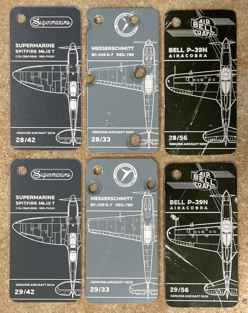 In 2022, the aircraft entered overhaul, during which the part used to create these tags was likely removed. Today, the aircraft is operated by Aerial Collective, based at Duxford Airfield. The Fuselage Creations team is proud to have secured this remarkable piece of aviation history to share with enthusiasts worldwide.