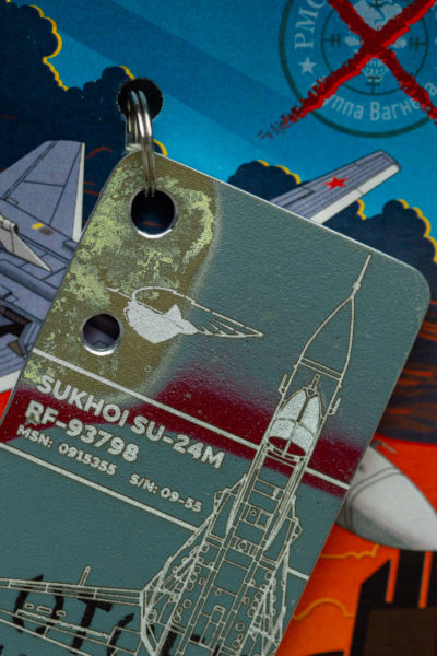 Enemy ‘Fencers’ of any model are a rare catch in Ukraine and the recovery of this aircraft was of great significance for the Ukrainian forces. The courageous fighters of the 80th Separate Galician Air Assault Brigade at the risk of their own lives, using their quad bikes and drones and carrying the instruments by hand, managed to access the crash site and retrieve the pieces which they could carry under the relentless and incessant gunfire. The fearlessness and heroism of these soldiers made it possible for collectors, like yourself, to own this tag and support the Ukrainian military!