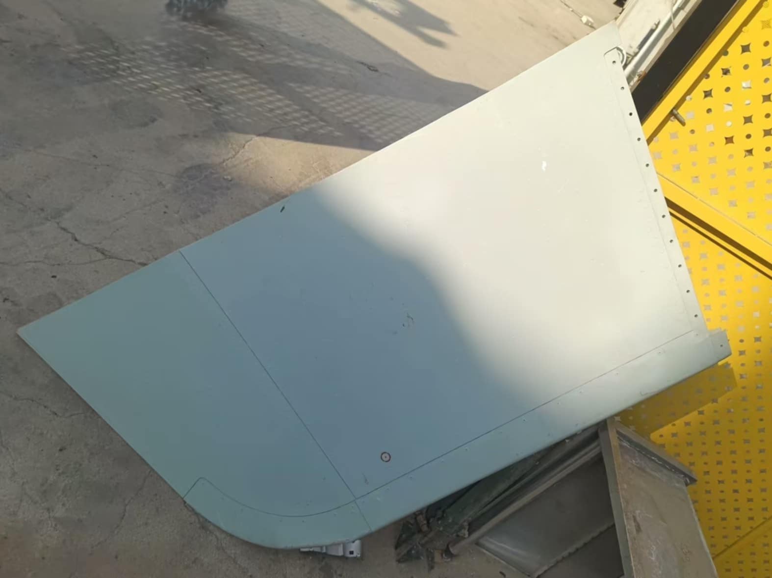 - Lower Tail Fuselage (Aluminum Alloy): This piece is taken from the lower portion of the rear fuselage. It features the signature PLANAF Tactical Gray paint over a high-strength aluminum alloy skin. This area of the airframe endured significant structural stress and environmental wear during years of low-altitude ocean patrols.