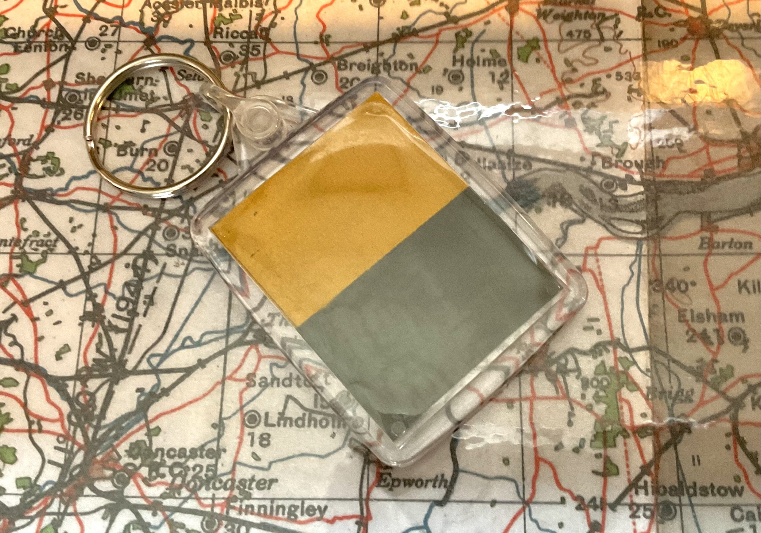 These unusual tags are made from actual Skeeter rotor fabric removed from a main rotor prior to its restoration. This primitive machine used metal spar rotors with wooden ribs and fabric covered skin. So different to the modern composites on current helicopters.